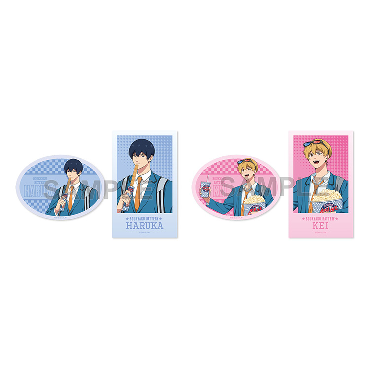 TVアニメ『忘却バッテリー』より、清峰と要が観光する姿を描いた新規描き下ろしイラストを使用した、ミニブロマイドとステッカーのセットです! スマホケースに入れて持ち歩いたり、お部屋にいっぱい飾れるミニサイズが特徴です。 ステッカーはキャラクターをお好きな場所に貼り付けて楽しめます。