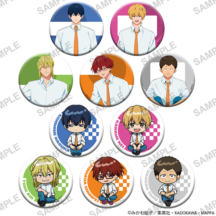 TVアニメ『忘却バッテリー』より、新規描き下ろしイラストと描き起こしイラストを使用したトレーディングの缶バッジです。